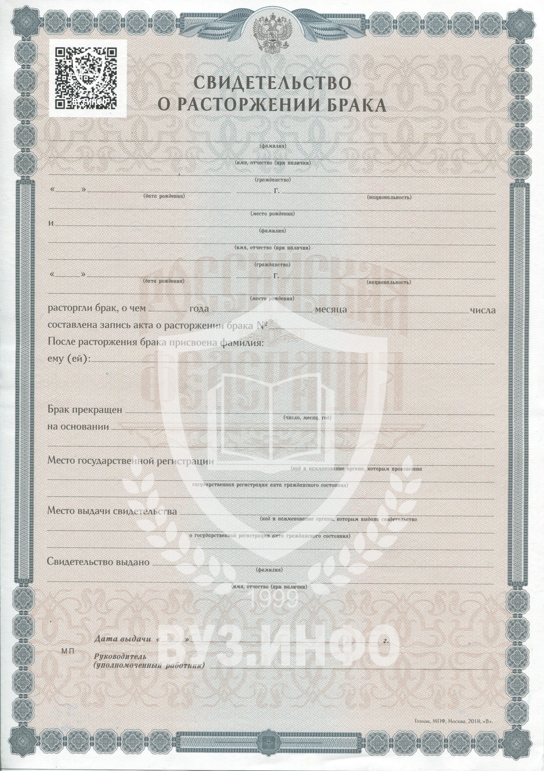 Обратите внимание — с 2019 года на всех свидетельствах ЗАГС есть QR-код в котором зашиты данные отдела ЗАГСа в котором выдавался данный документ. Такие бланки у нас конечно же есть и будут сделаны согласно всем стандартам.